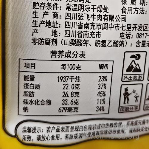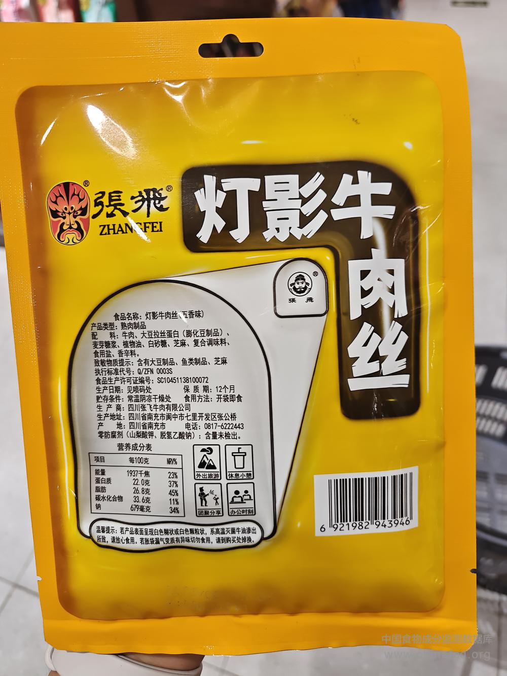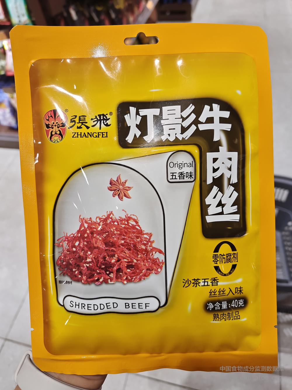 当前位置:预包装食品营养标签数据查询系统>>张飞灯影牛肉丝