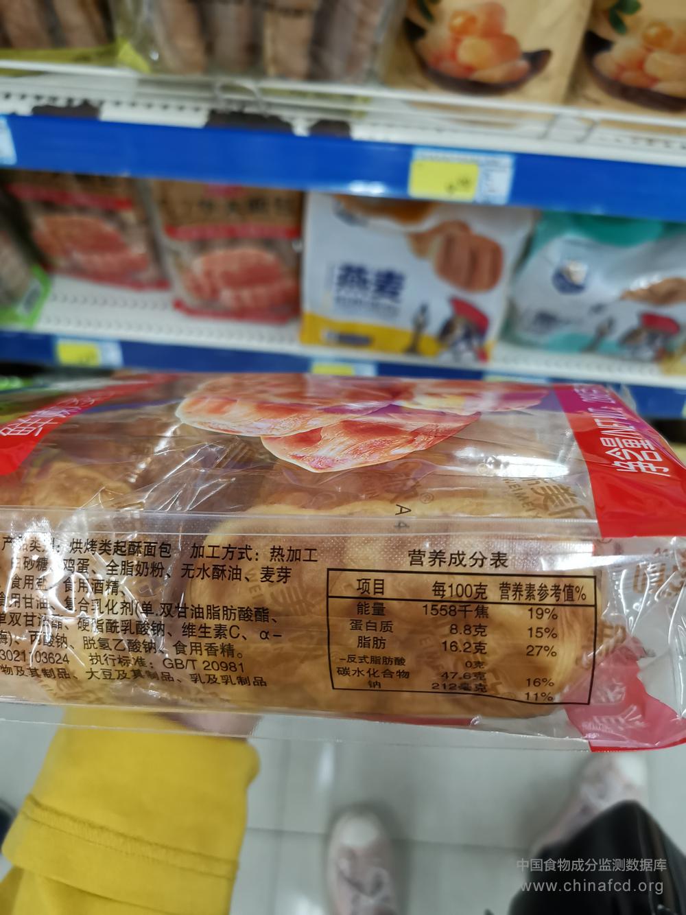 生产厂家:宁波味美欣食品有限公司 品牌:味美欣 食物类别:休闲食品-饼干、面包-面包-其他 配料:小麦粉、饮用水、白砂糖、鸡蛋、全脂奶粉、无水酥油、麦芽糖浆、食用酵母、食用盐、食用酒精、食品添加剂:山梨糖醇液、食用甘油、复合乳化液(单,双甘油脂肪酸酯、双乙酰酒石酸单双甘油酯、硬脂酰乳酸钠、维生素C、α-淀粉酶、脂肪酶)、丙酸钠、脱氢乙酸钠、食用香精。 净含量:288g 条形码/识别码:6935563400612 储存方法:请置于阴凉干燥、清洁的场所,避免阳光直射,温度小于或者等于25℃,相对湿度小于或者等于60% 产地:浙江宁波