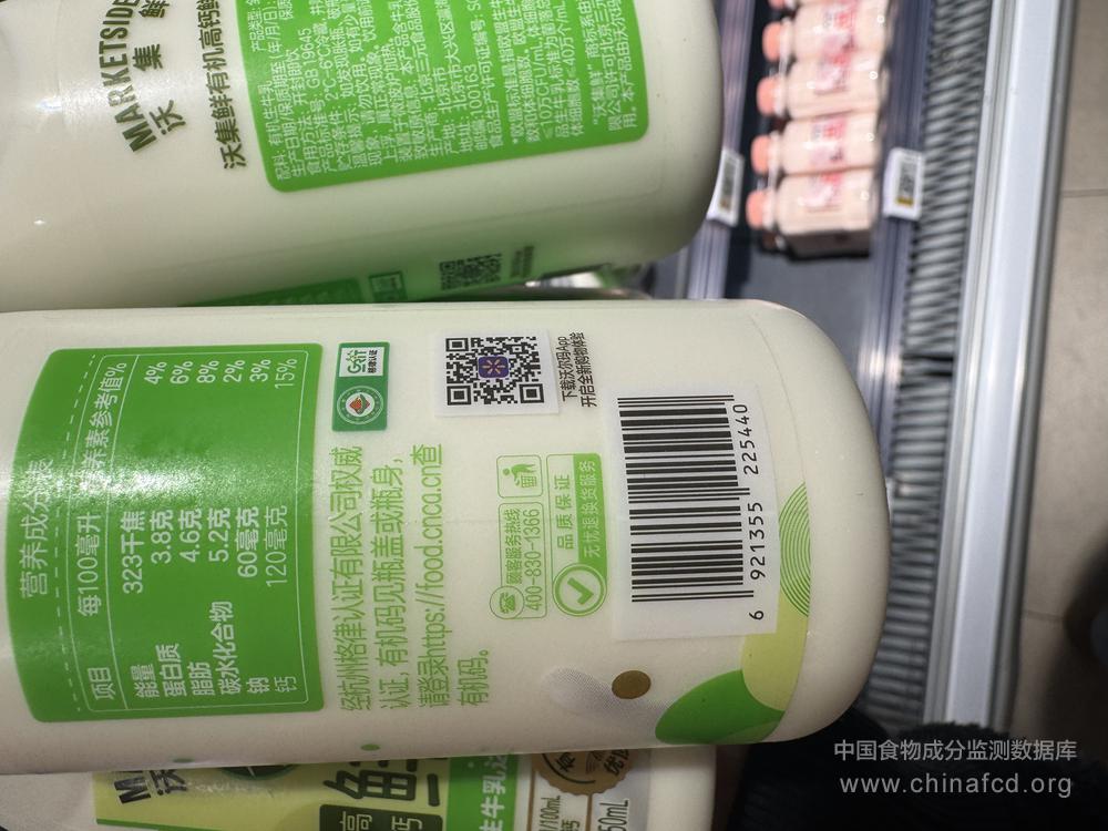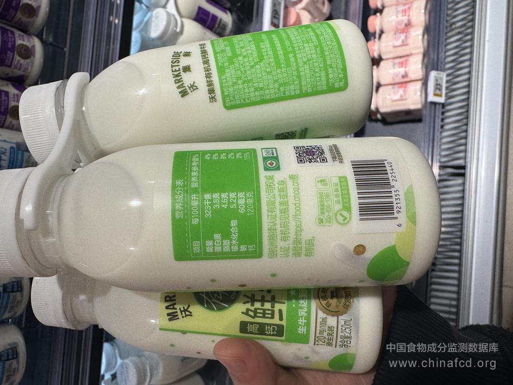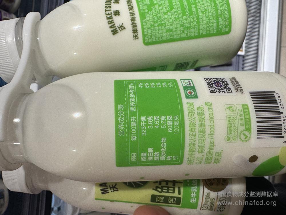 当前位置:预包装食品营养标签数据查询系统>>沃集鲜有机高钙鲜牛奶