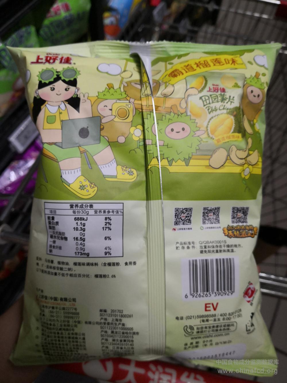 当前位置:预包装食品营养标签数据查询系统>>上好佳田园薯片霸道榴莲味