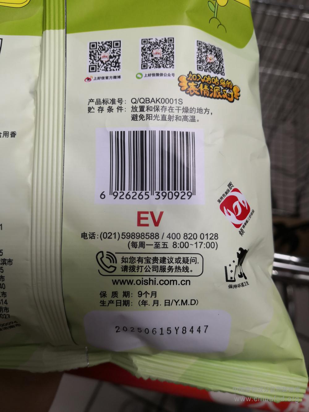 生产厂家:山东上好佳食品工业有限公司 品牌:上好佳 食物类别:休闲食品-膨化食品--薯片/薯条 配料:马铃薯,植物油,榴莲味调味料(含榴莲粉,食用香精,5’呈味核苷酸二钠) 净含量:80克 条形码/识别码:6926265390929 储存方法:放置和保存在干燥的地方,避免阳光直射和高温 产地:山东省济南市
