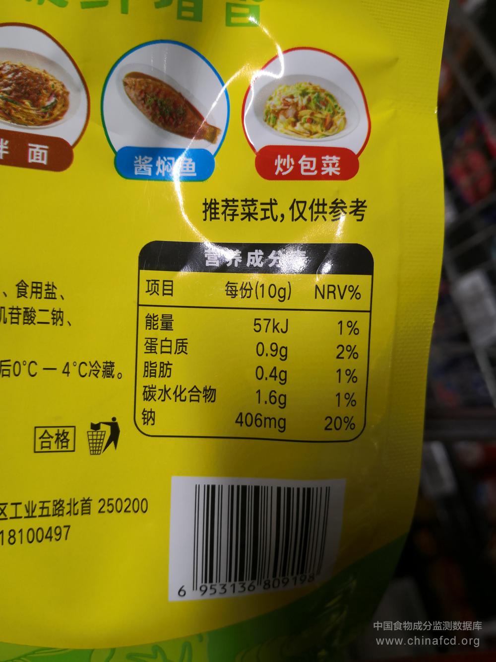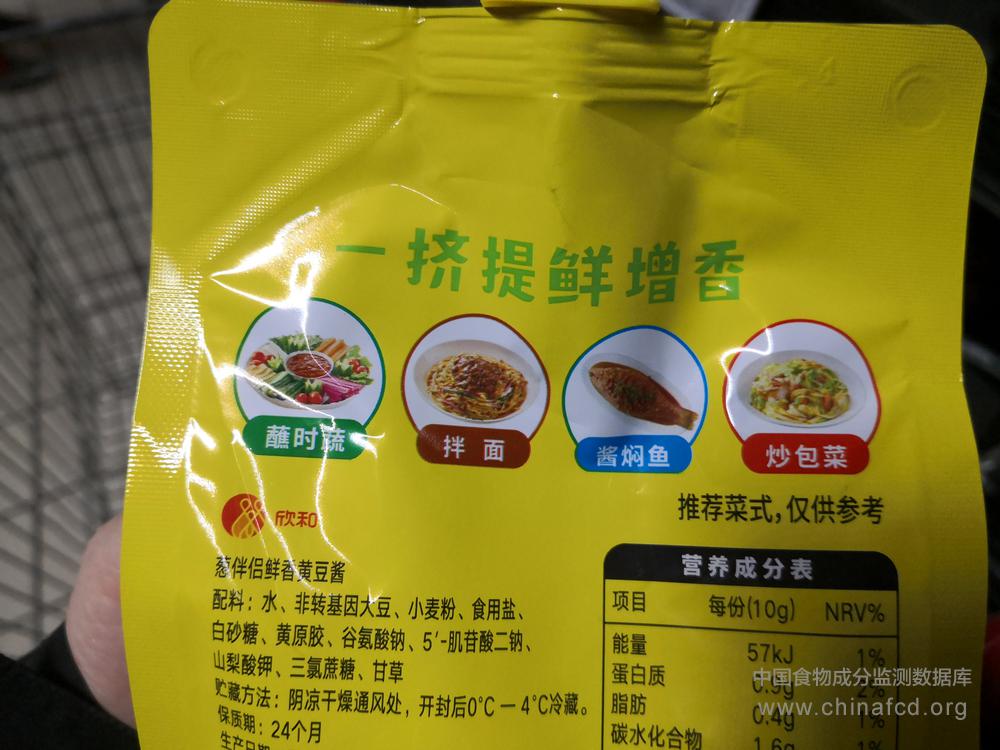 当前位置:预包装食品营养标签数据查询系统>>欣和葱伴侣鲜香黄豆酱