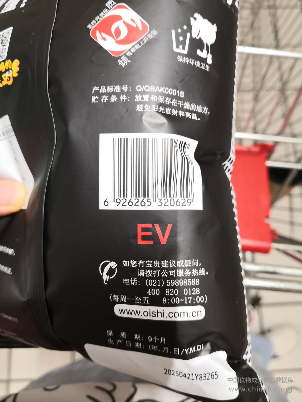 生产厂家:山东上好佳食品工业有限公司 品牌:上好佳 食物类别:休闲食品-膨化食品--薯片/薯条 配料:马铃薯,植物油,酸菜鱼味调味料(含食用香精) 净含量:80克 条形码/识别码:6926265320629 储存方法:放置和保存在干燥的地方,避免阳光直射和高温 产地:山东省济南市