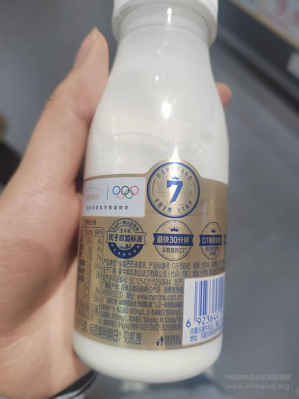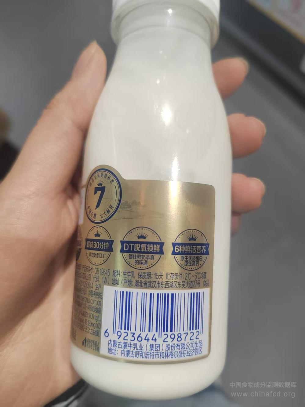 生产厂家:蒙牛鲜乳制品武汉有限公司 品牌:每日鲜语 食物类别:乳类及制品-液态乳--巴氏杀菌乳 配料:生牛乳 净含量:185mL 条形码/识别码:6923644298722 储存方法:2-6℃冷藏 产地:湖北省武汉市东西湖区东吴大道27号