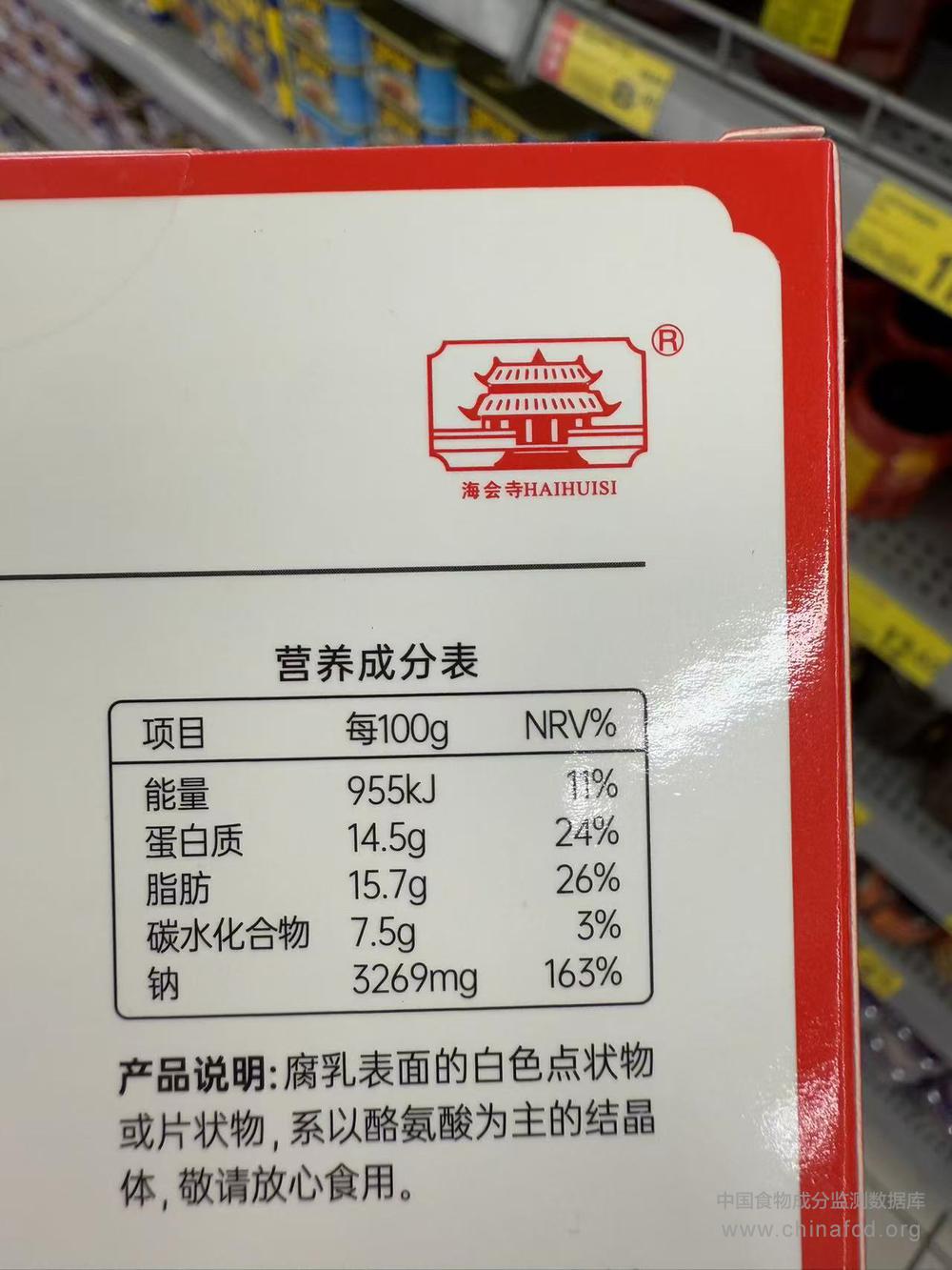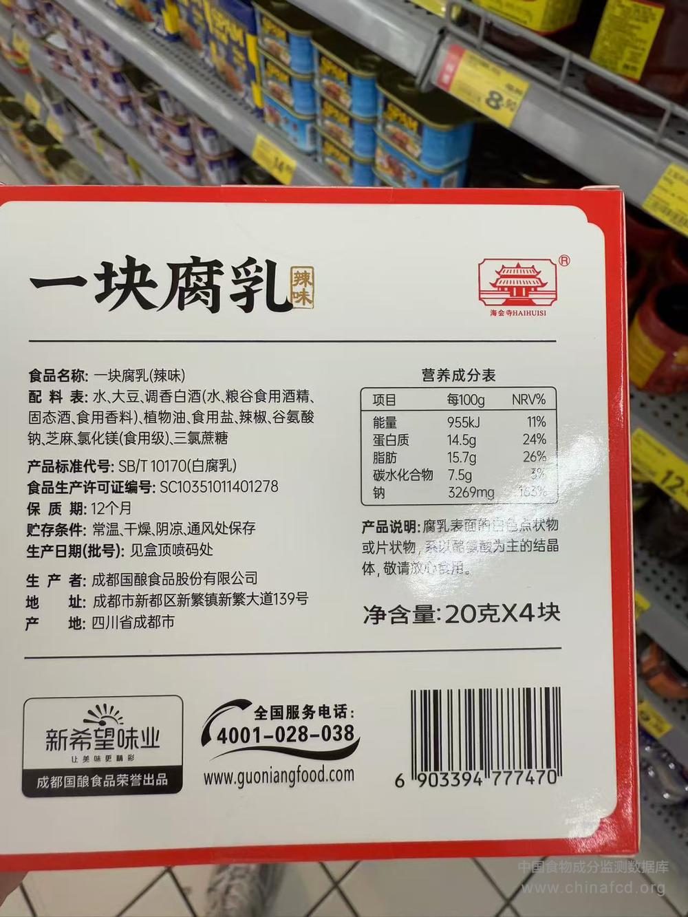 当前位置:预包装食品营养标签数据查询系统>>一块腐乳(辣味)