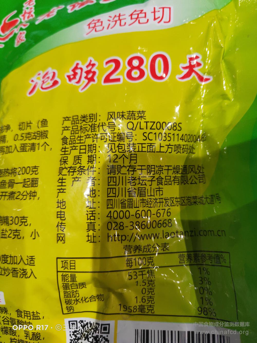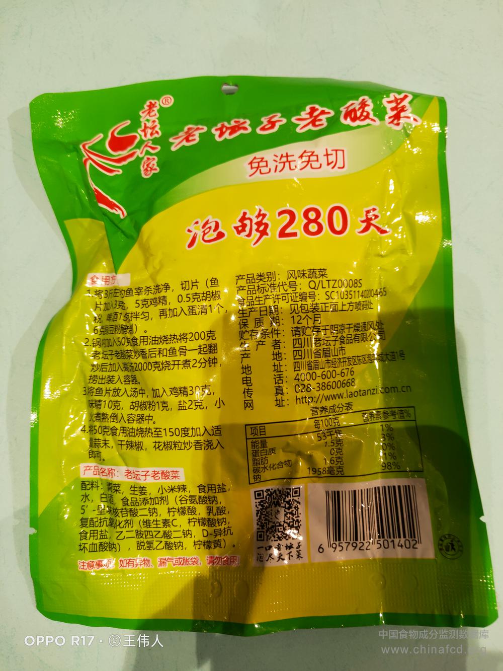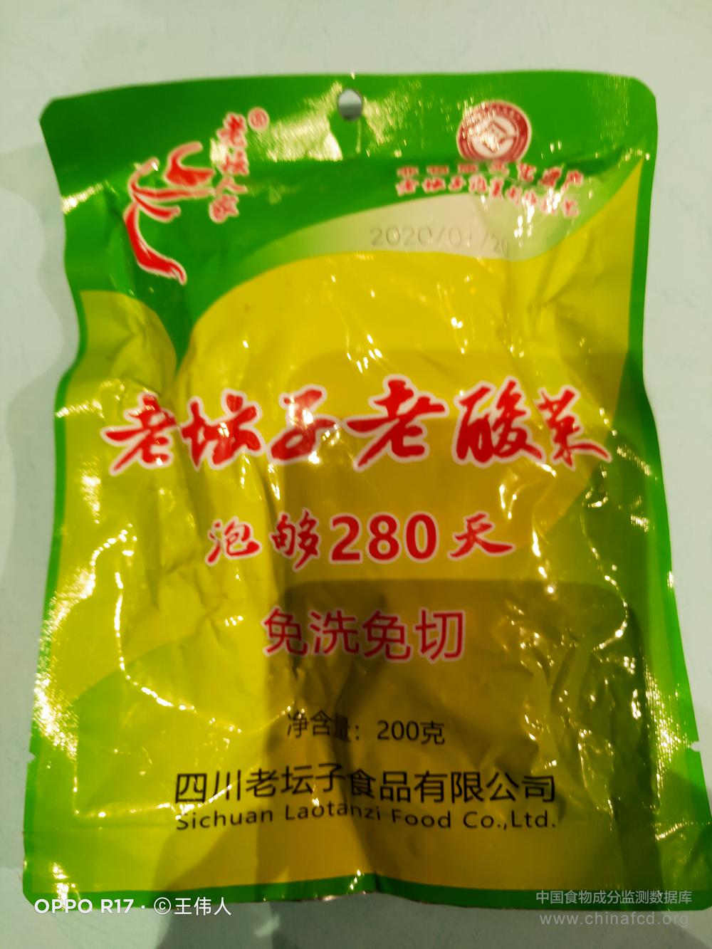 当前位置:预包装食品营养标签数据查询系统>>老坛人家老坛子老酸菜