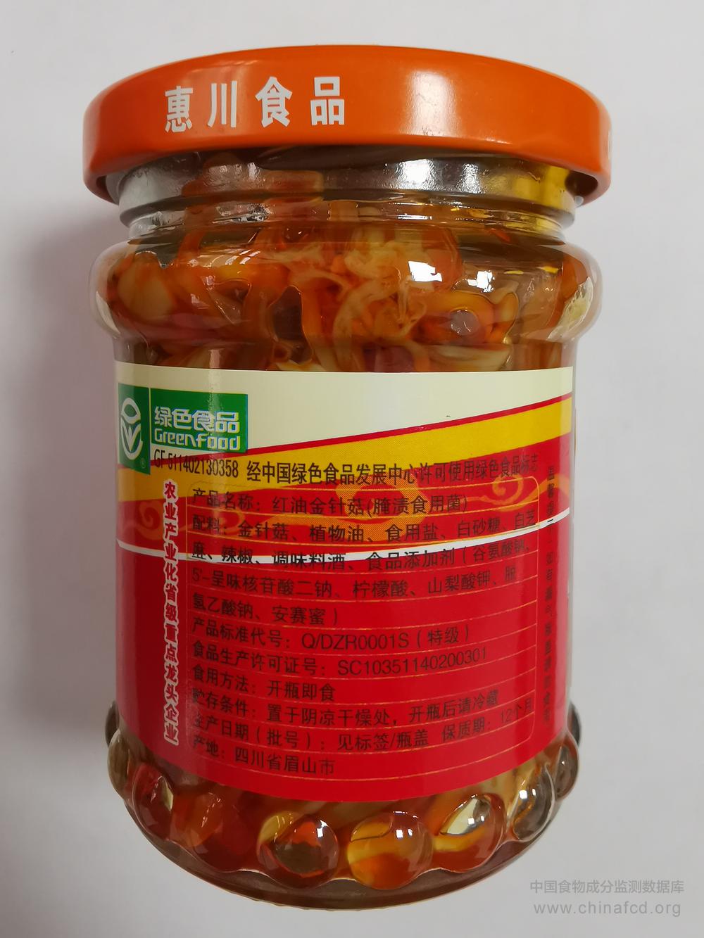 当前位置:预包装食品营养标签数据查询系统>>惠川红油金针菇