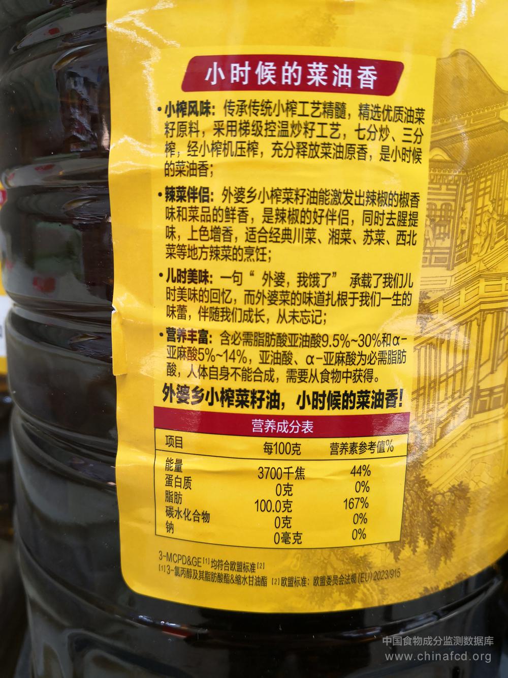 当前位置:预包装食品营养标签数据查询系统>>金龙鱼外婆乡小榨菜籽油