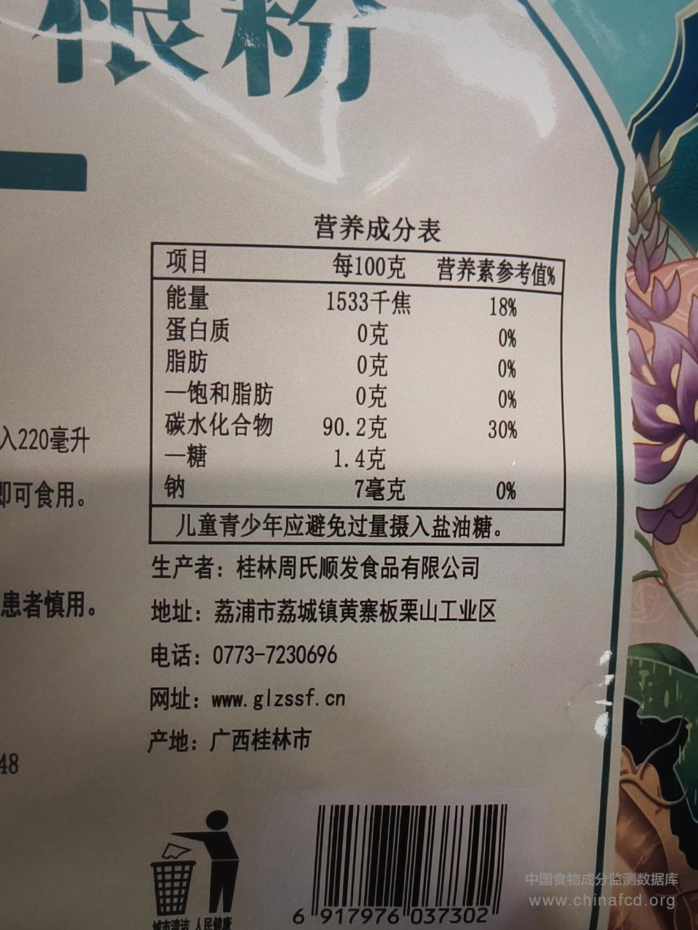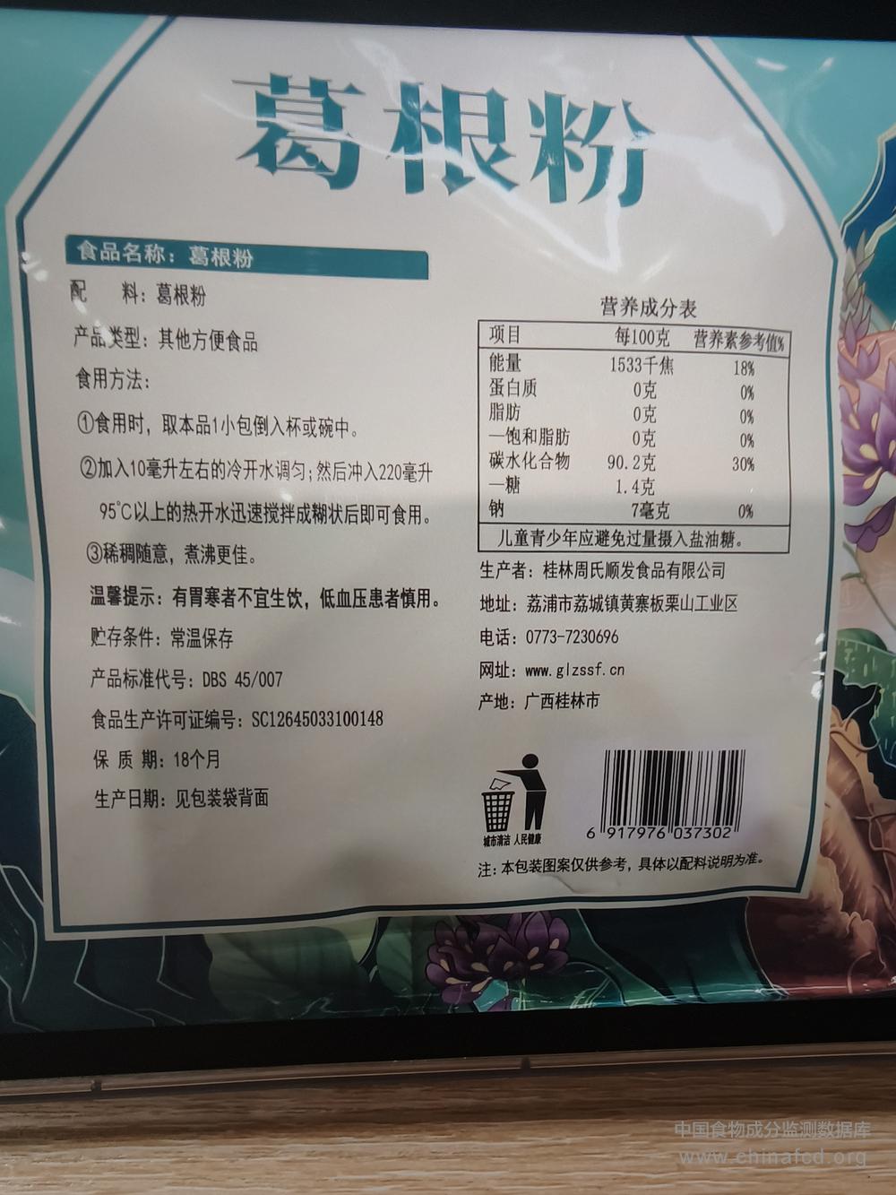 当前位置:预包装食品营养标签数据查询系统>>周氏葛根粉