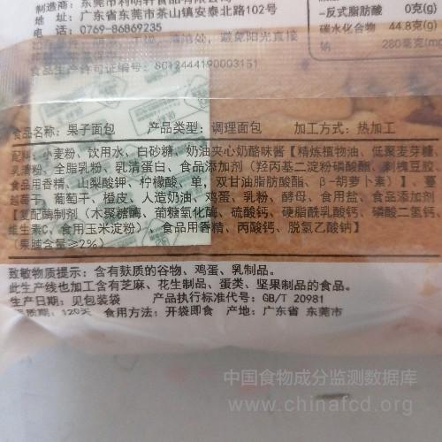 当前位置:预包装食品营养标签数据查询系统>>果子面包
