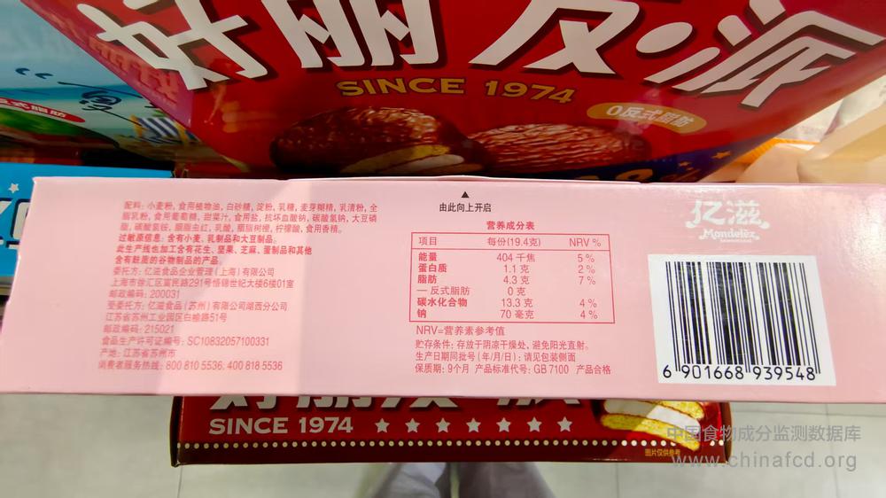 生产厂家:亿滋食品(苏州)有限公司湖西分公司 品牌:亿滋奥利奥 食物类别:休闲食品-饼干、面包-饼干-夹心及装饰类 配料:小麦粉,食用植物油,白砂糖,淀粉,乳糖,麦芽糊精,乳清粉,全脂乳粉,食用葡萄糖,甜菜汁,食用盐,抗坏血酸钠,碳酸氢钠,大豆磷脂,碳酸氢铵,胭脂虫红,乳酸,胭脂树橙,柠檬酸,食用香精。 净含量:194g 条形码/识别码:6901668939548 储存方法:存放于阴凉干燥处,避免阳光直射。 产地:江苏省苏州市