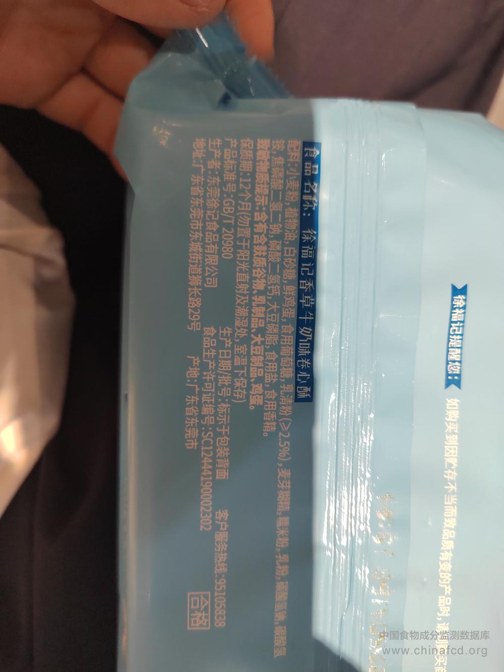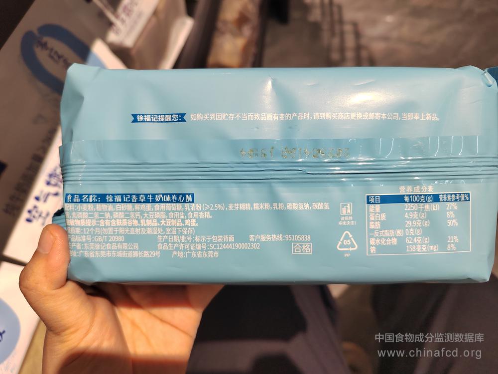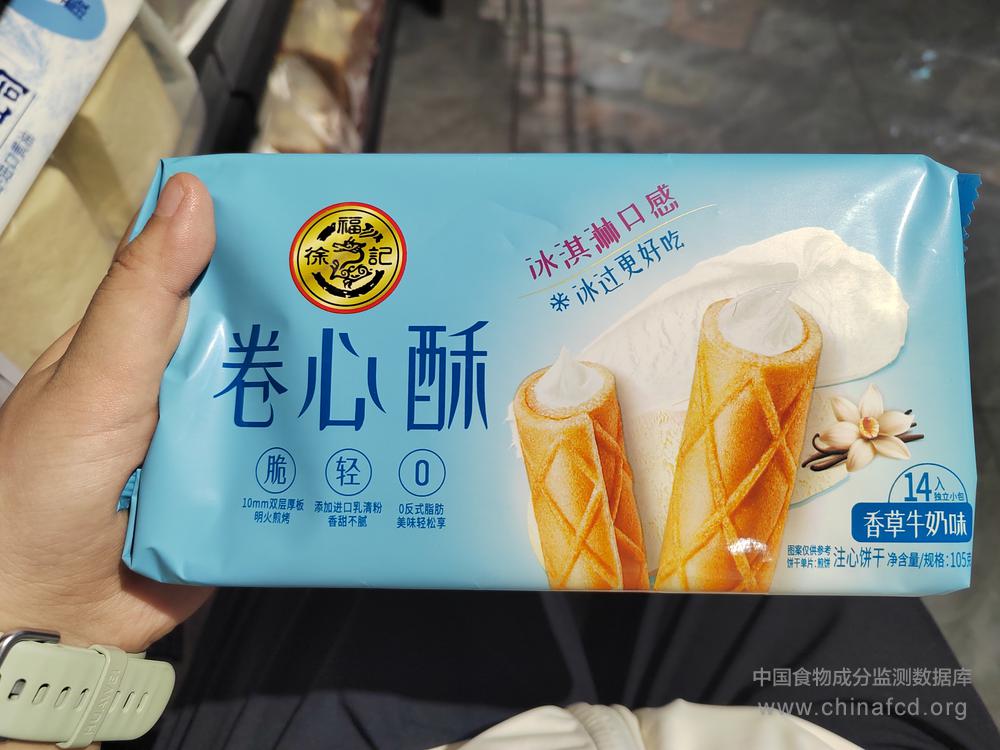 当前位置:预包装食品营养标签数据查询系统>>徐福记卷心酥香草牛奶味
