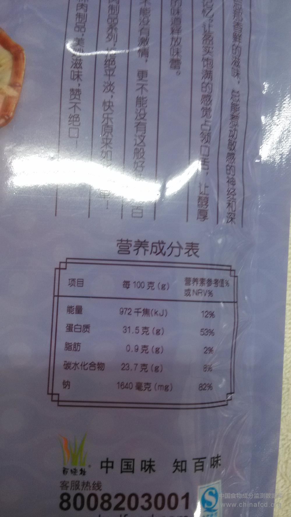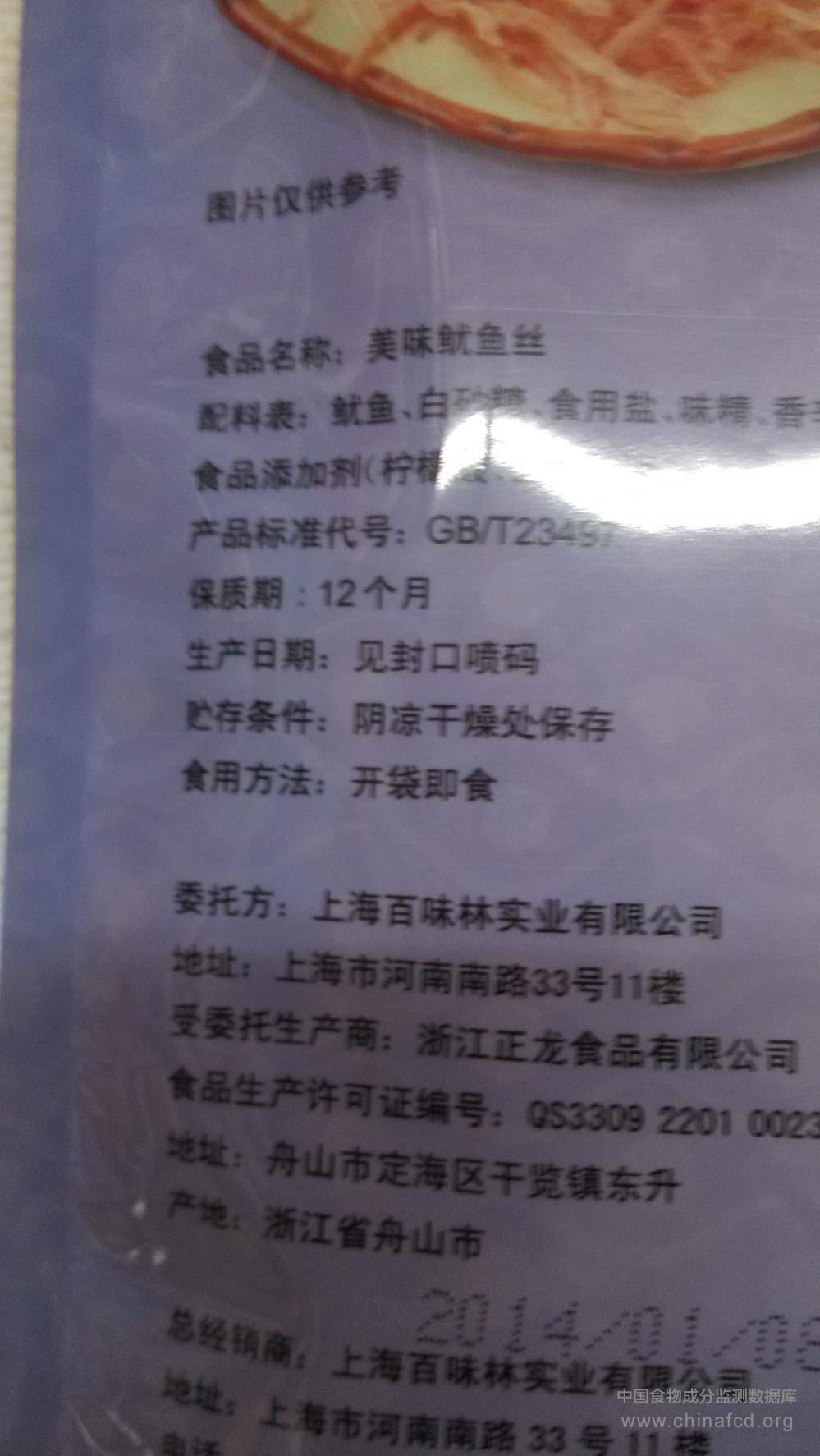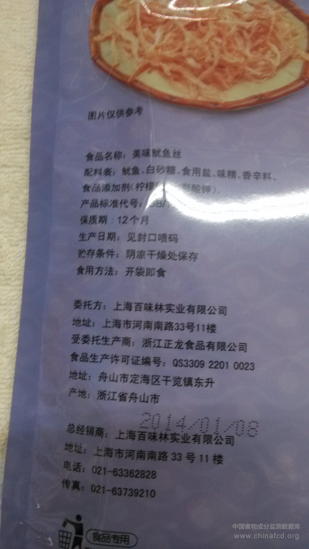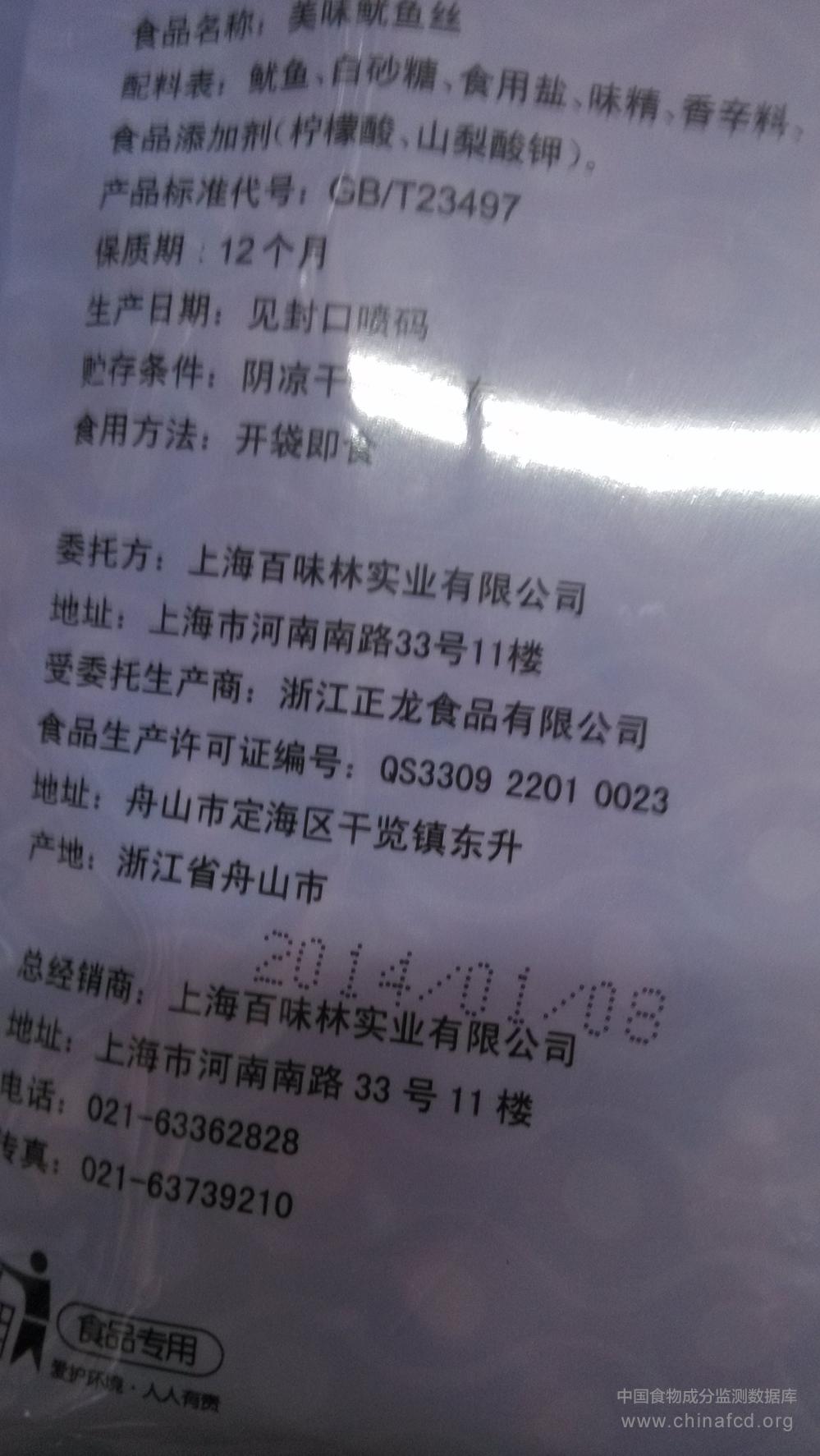 当前位置:预包装食品营养标签数据查询系统>>百味林鱿鱼丝