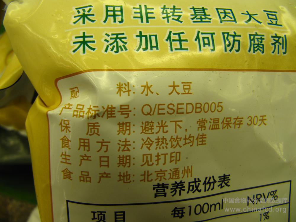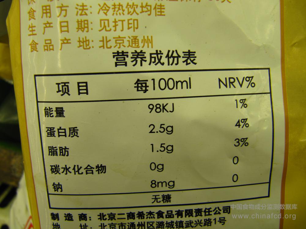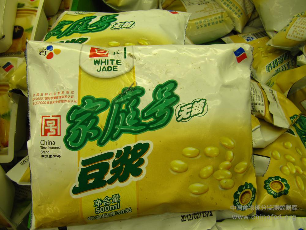 当前位置:预包装食品营养标签数据查询系统>>白玉家庭号无糖豆浆