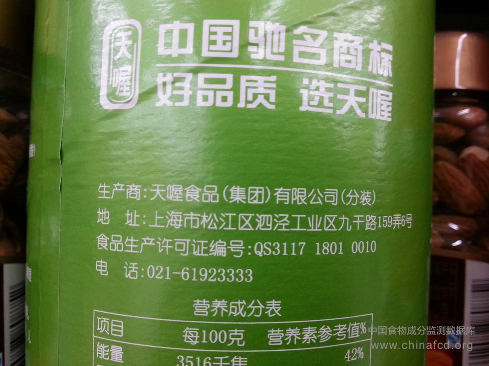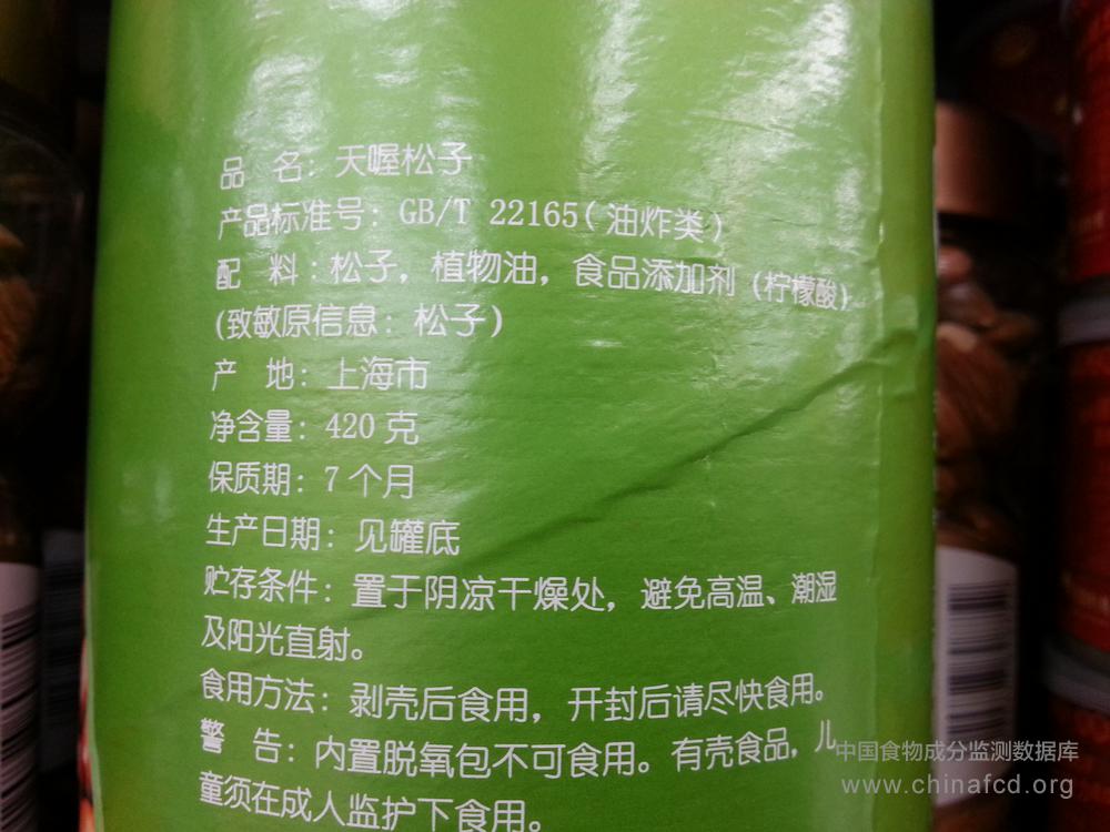 当前位置:预包装食品营养标签数据查询系统>>天喔松籽