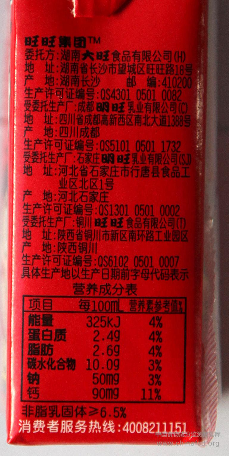 当前位置:预包装食品营养标签数据查询系统>>旺仔复原乳牛奶
