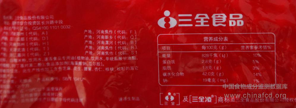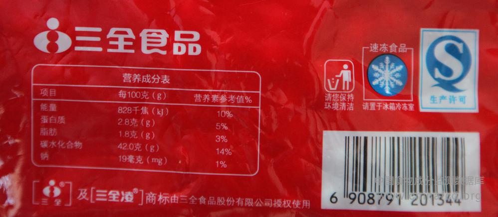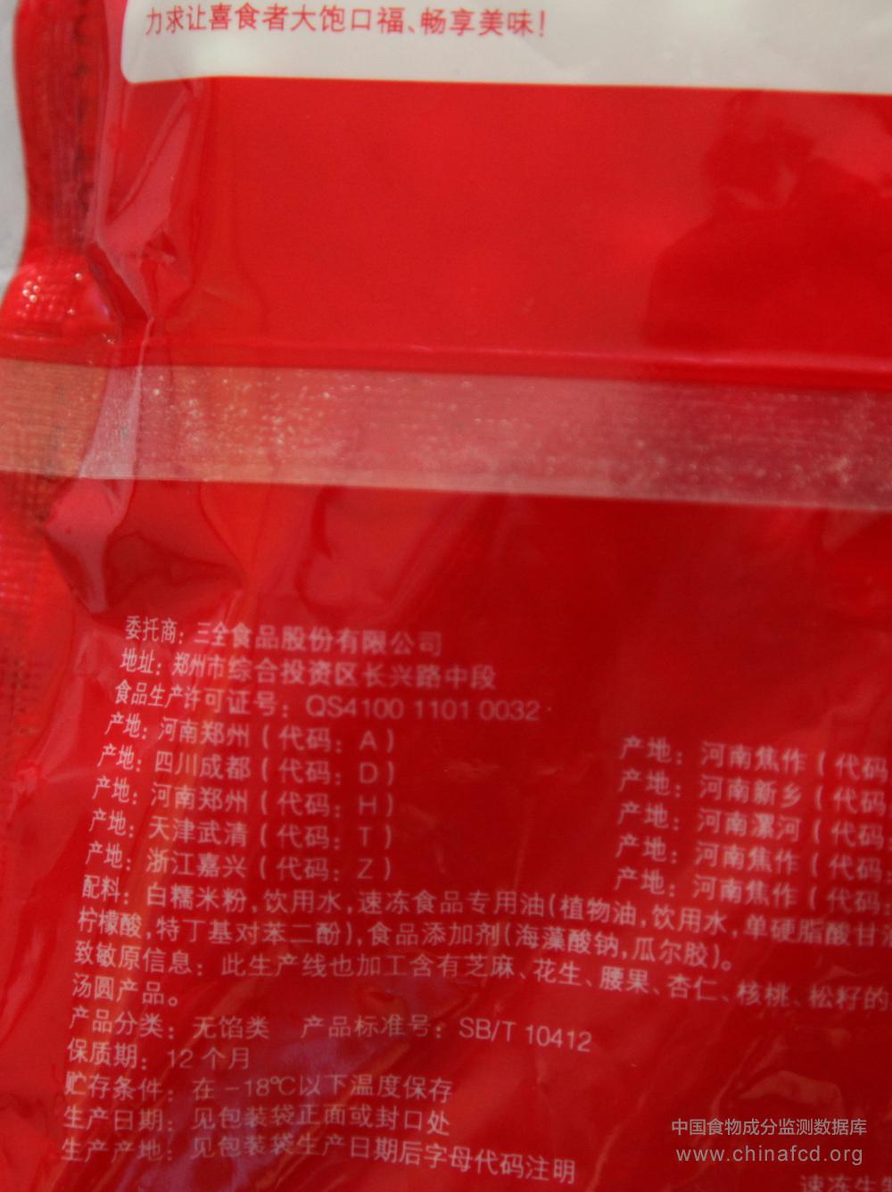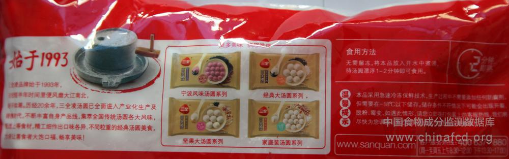 当前位置:预包装食品营养标签数据查询系统>>三全三全凌白糯米小丸子子汤圆