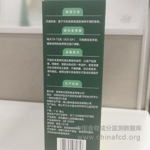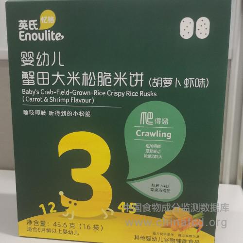当前位置:预包装食品营养标签数据查询系统>>婴幼儿蟹田大米松脆米饼(胡萝卜虾味)