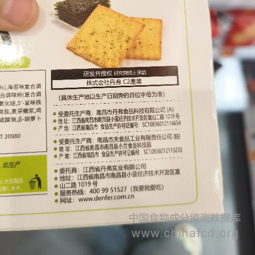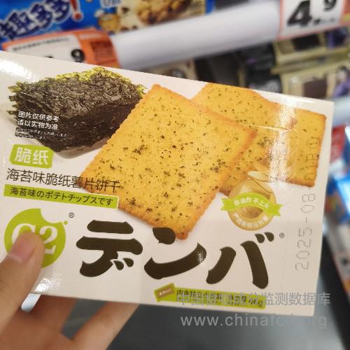 配料:小麦粉,食用植物油,白砂糖,马铃薯雪花全粉,马铃薯(≥8%),海苔味复合调味料(白砂糖,海苔,味精,食品用香精,食用盐,复合酸水解植物蛋白调味粉(复合调味料),麦芽糊精,复合酱油调味粉(复合调味料),食品添加剂(二氧化硅,5‘-呈味核苷酸二钠,阿斯巴甜(含苯丙氨酸),三氯蔗糖),香辛料(辐照)),食用盐,麦芽糖浆,鸡蛋黄粉,全脂乳粉,味精,食品添加剂(碳酸氢氨,碳酸氢钠,焦亚硫酸钠,β-胡萝卜素),食品用香精