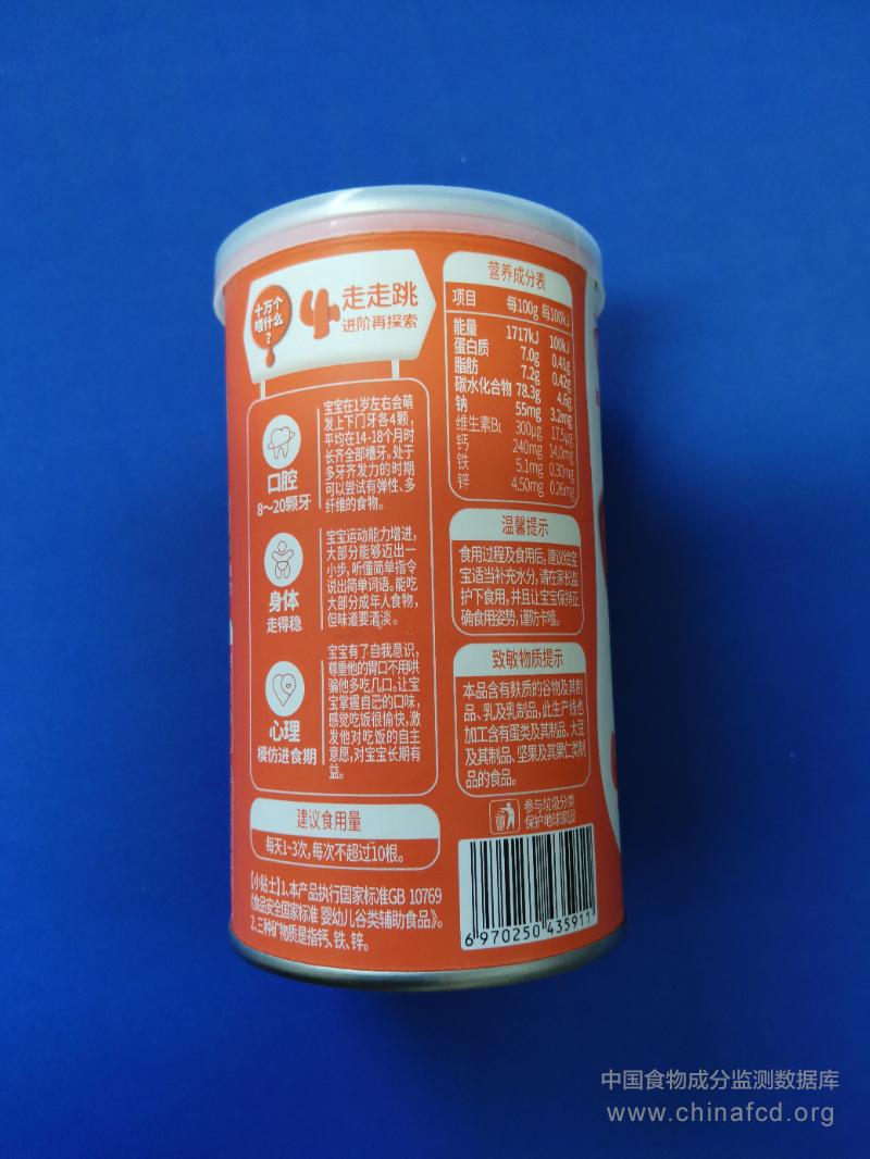 当前位置:预包装食品营养标签数据查询系统>>秋田满满婴幼儿炭烧棒饼干