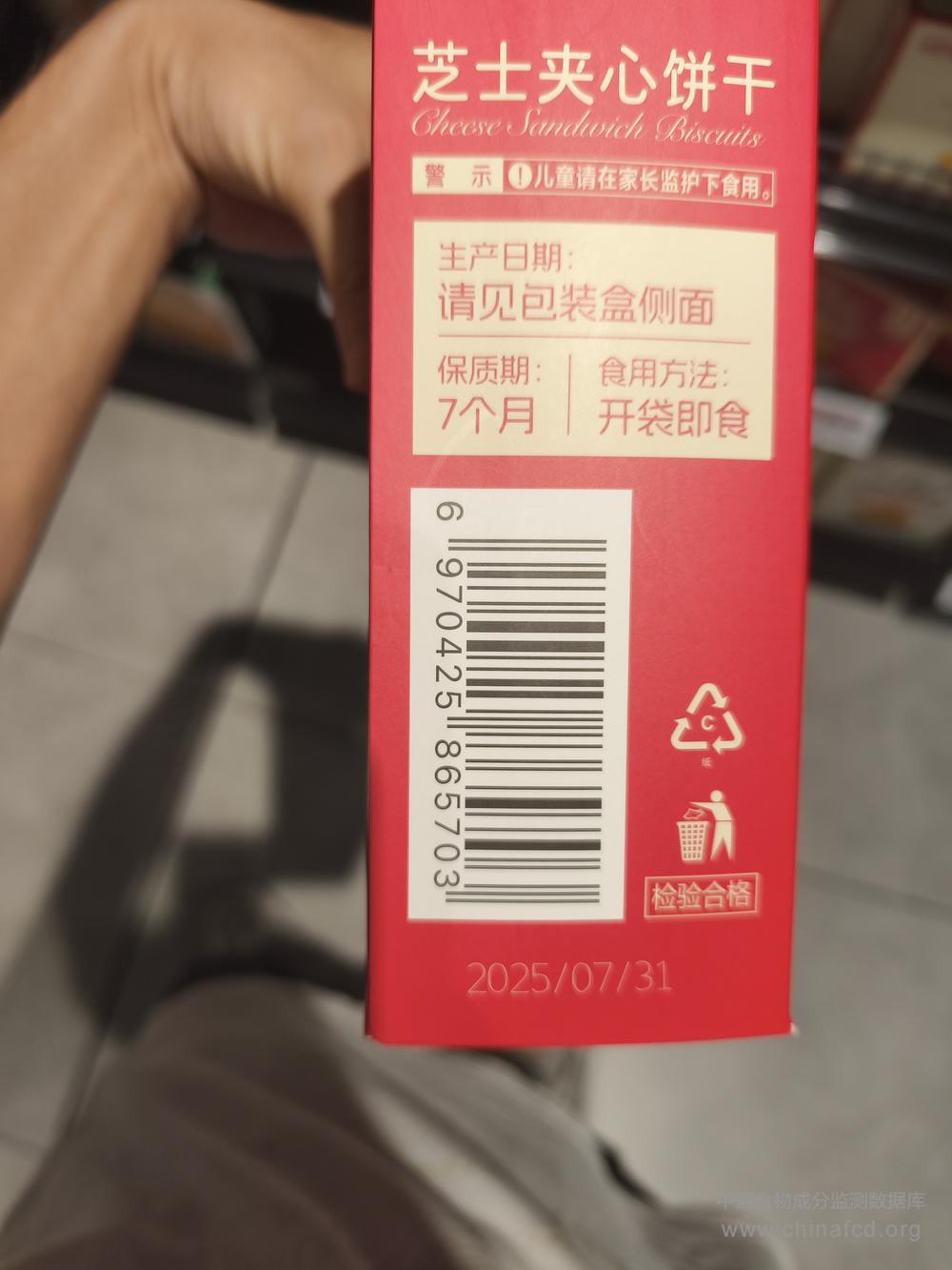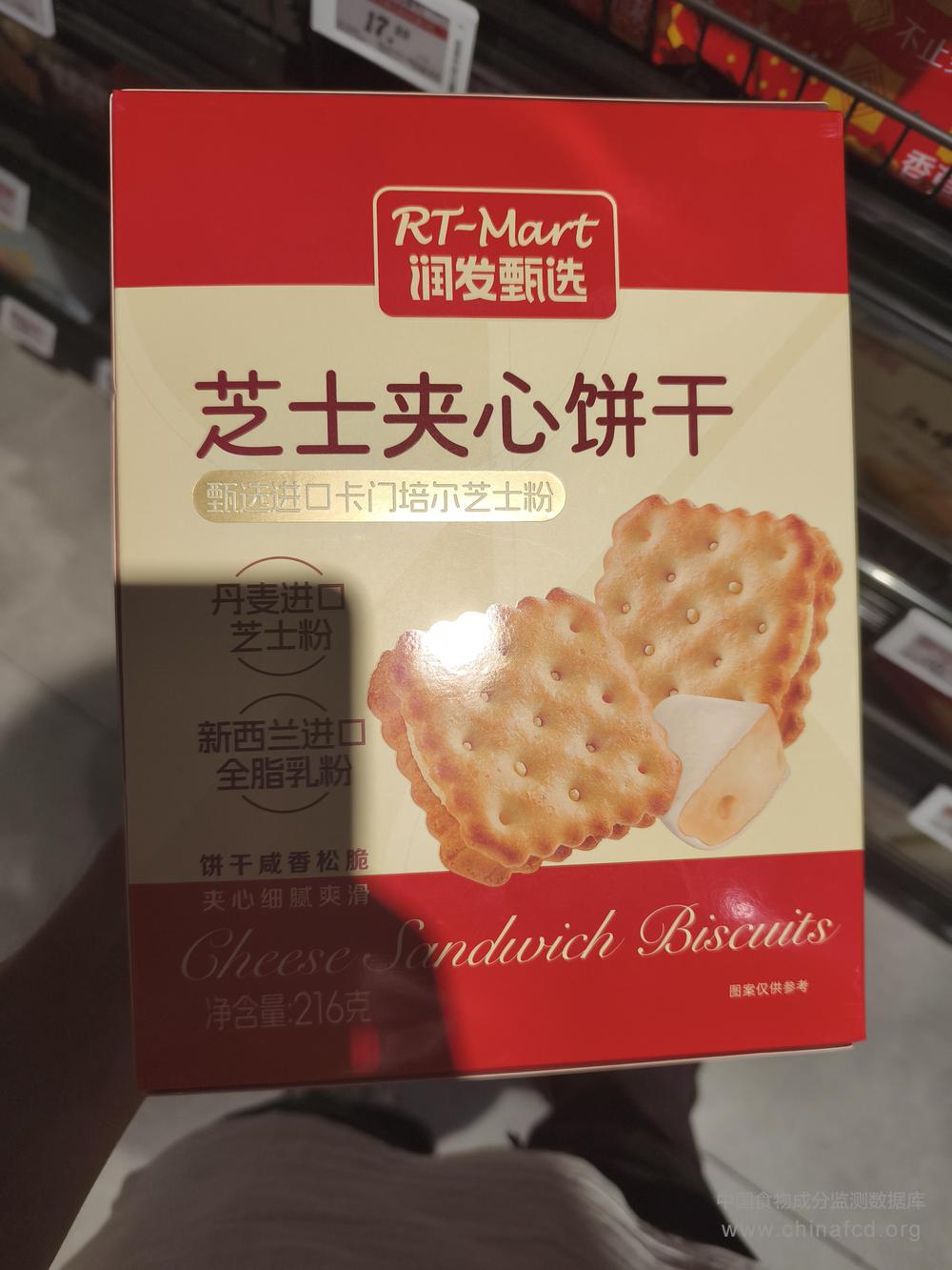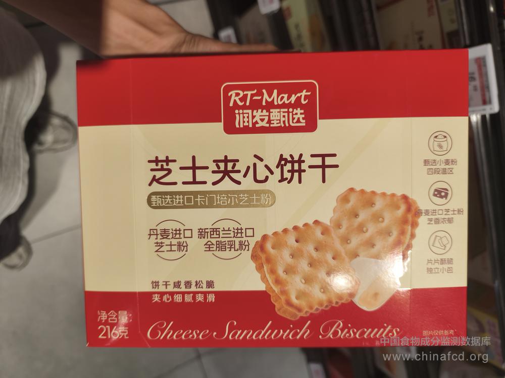 当前位置:预包装食品营养标签数据查询系统>>润发甄选芝士夹心饼干