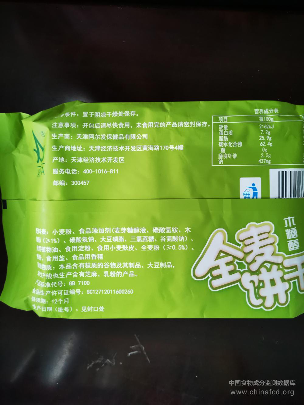 当前位置:预包装食品营养标签数据查询系统>>全麦饼干
