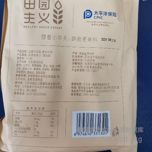 生产厂家:夕又米(福建)食品有限公司 品牌:田园主义 食物类别:休闲食品-饼干、面包-饼干-其他 配料:全麦粉,麦芽糖醇,黄油,鸡蛋,木薯淀粉,脱脂奶粉,姜黄粉,肉桂粉,黑胡椒粉,碳酸氢钠,碳酸钠,碳酸氢铵 净含量:210g 条形码/识别码:6974610331301 储存方法:阴凉干燥 产地:福建省龙海市