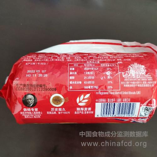 当前位置:预包装食品营养标签数据查询系统>>麦维他原味消化饼干