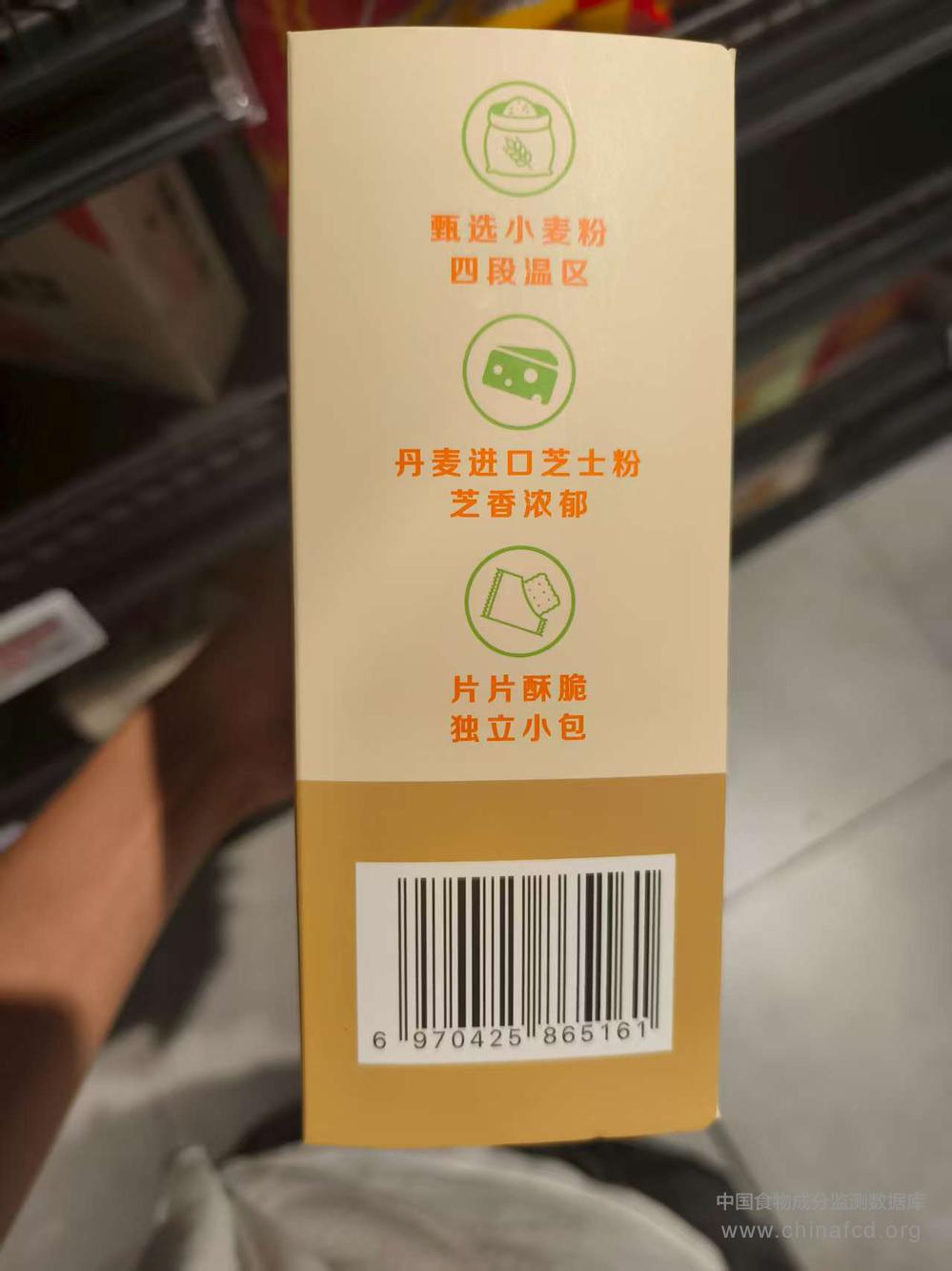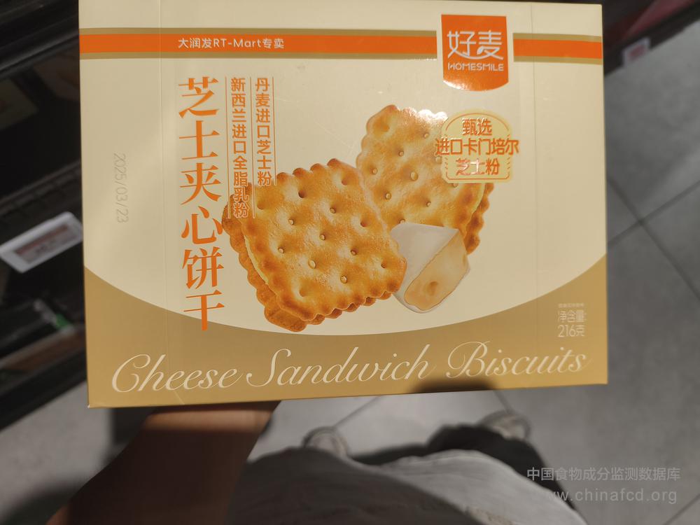 当前位置:预包装食品营养标签数据查询系统>>好麦芝士夹心饼干