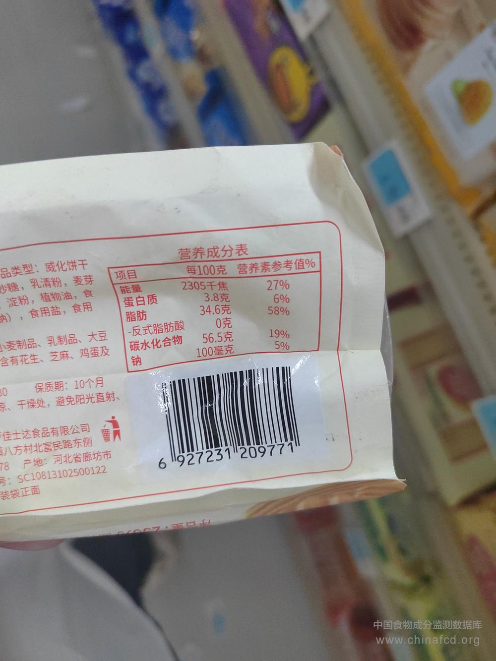 生产厂家:大城县美萨佳士达食品有限公司 品牌:曼士卡 食物类别:休闲食品-饼干、面包-饼干-威化饼干 配料:小麦粉,起酥油,白砂糖,乳清粉,麦芽糊精,脱脂乳粉(≥3%),淀粉,植物油,食品添加剂(磷脂, 碳酸氢钠) ,食用盐,食用香精香料。 净含量:238g 条形码/识别码:6927231209771 储存方法:请置于阴凉、干燥处,避免阳光直射、高温、潮湿。 产地:河北省廊坊市