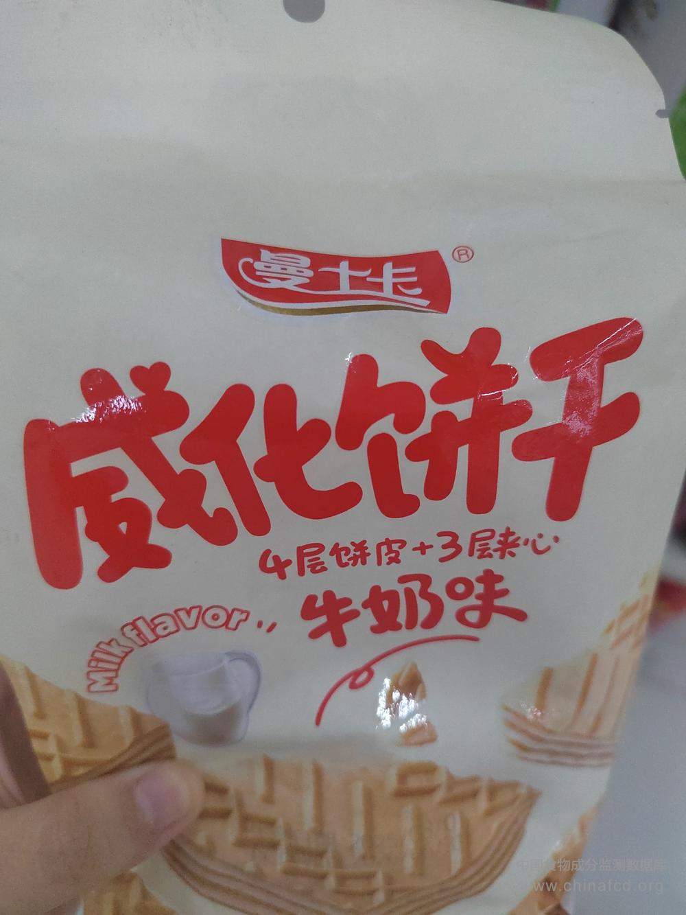 当前位置:预包装食品营养标签数据查询系统>>曼士卡威化饼干牛奶味