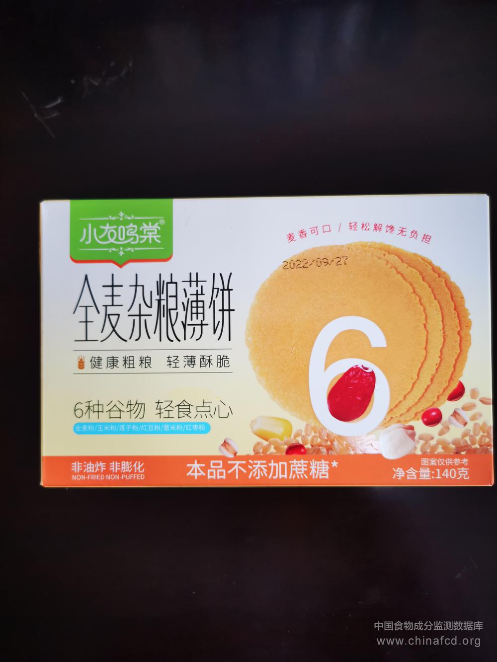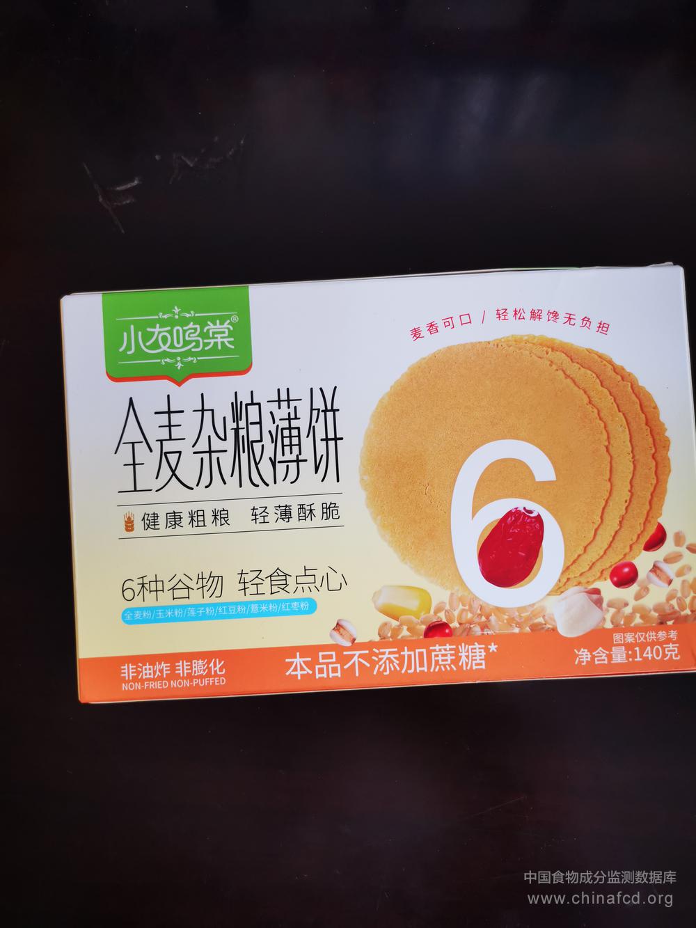 当前位置:预包装食品营养标签数据查询系统>>小友鸣棠全麦杂粮薄饼