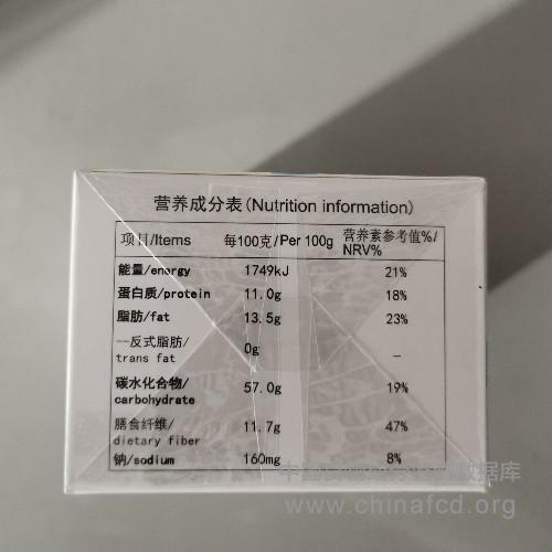 当前位置:预包装食品营养标签数据查询系统>>DGI饼干