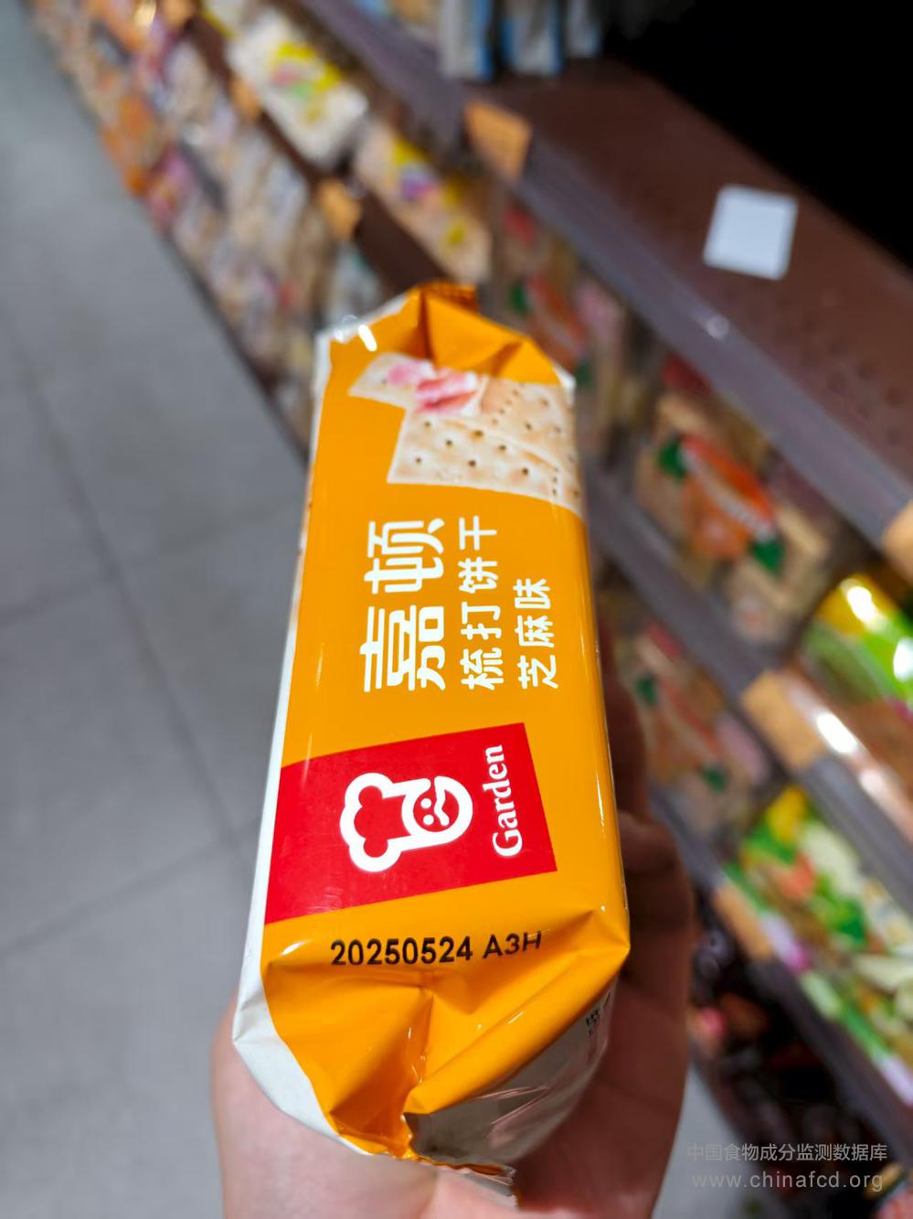 当前位置:预包装食品营养标签数据查询系统>>嘉顿梳打饼干芝麻味