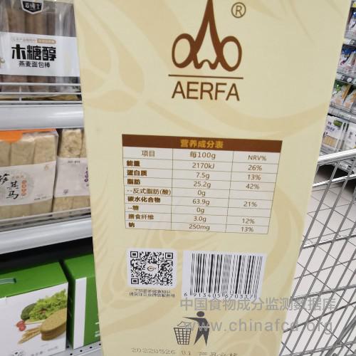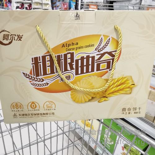 生产厂家:天津阿尔发保健品有限公司 品牌:阿尔法 食物类别:休闲食品-饼干、面包-饼干-曲奇 配料:小麦粉、麦芽糖醇液、食用植物油、燕麦粉≥4%、碳酸氢铵、碳酸氢钠、大豆磷脂、食用盐、乳粉、三氯蔗糖。 净含量:958克 条形码/识别码:6913405670317 储存方法:置于阴凉干燥处保存 产地:天津经济技术开发区