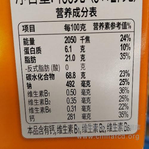当前位置:预包装食品营养标签数据查询系统>>钙芝奶酪味威化饼干