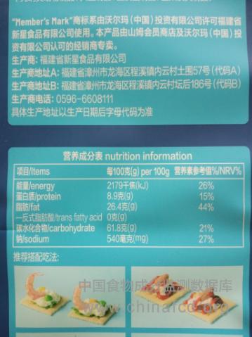 当前位置:预包装食品营养标签数据查询系统>>山姆海盐苏打饼干
