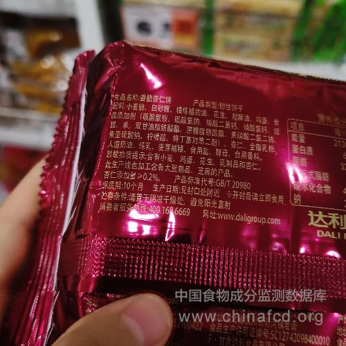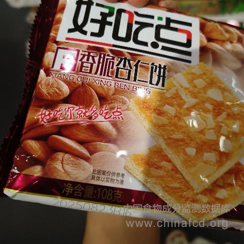 当前位置:预包装食品营养标签数据查询系统>>好吃点香脆杏仁饼