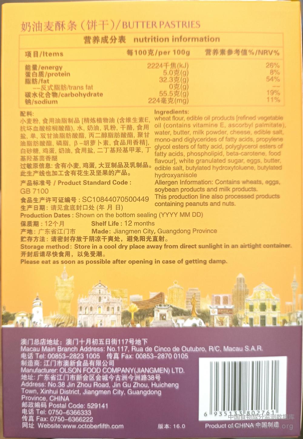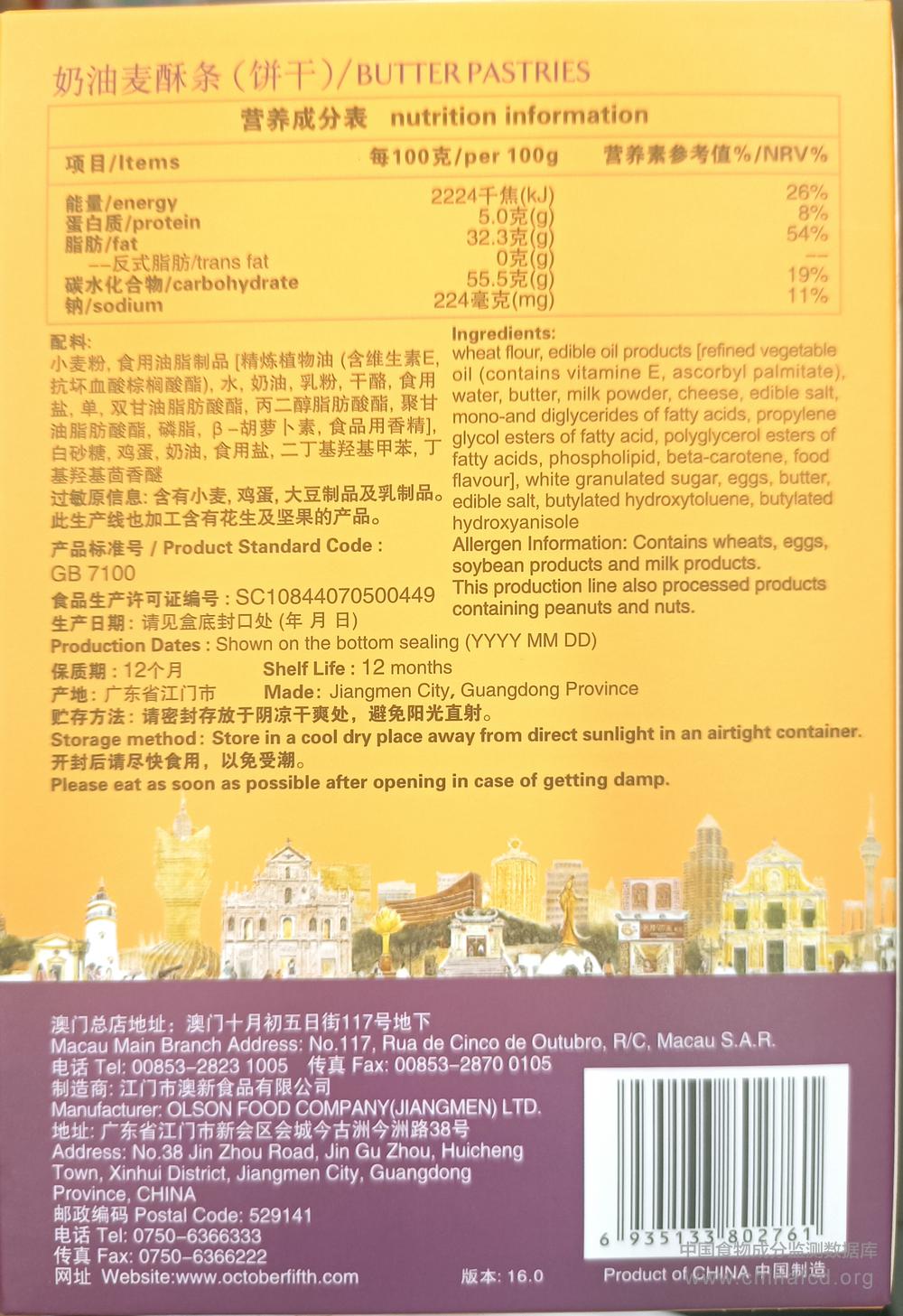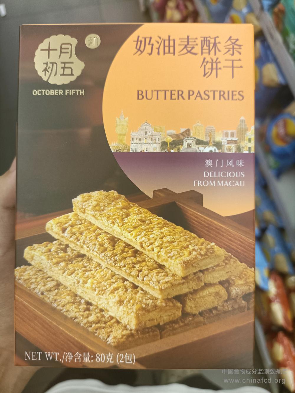 当前位置:预包装食品营养标签数据查询系统>>十月初五奶油麦酥条饼干