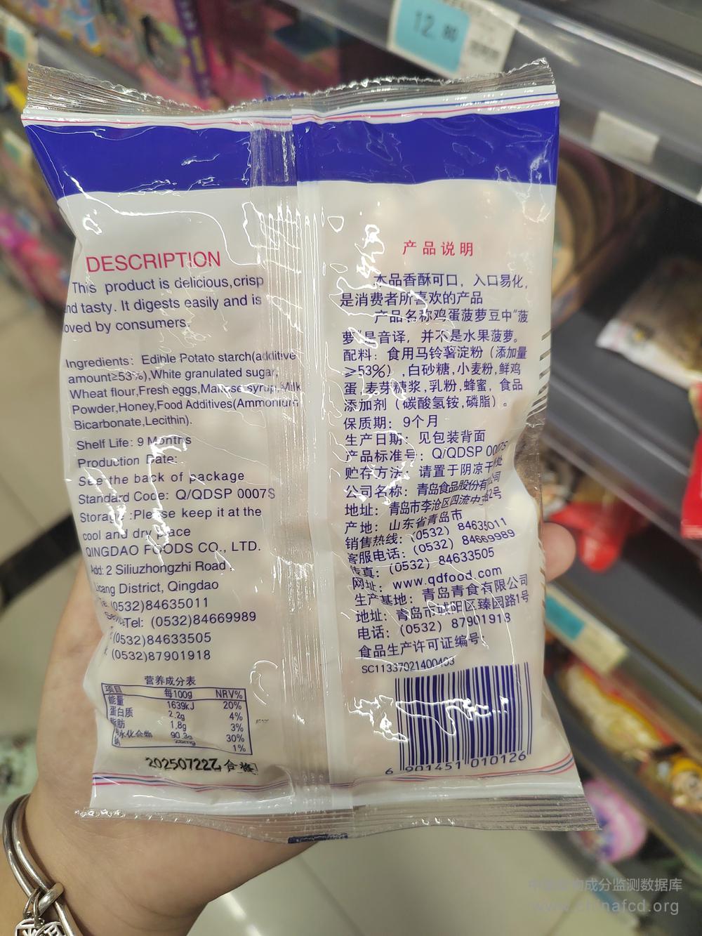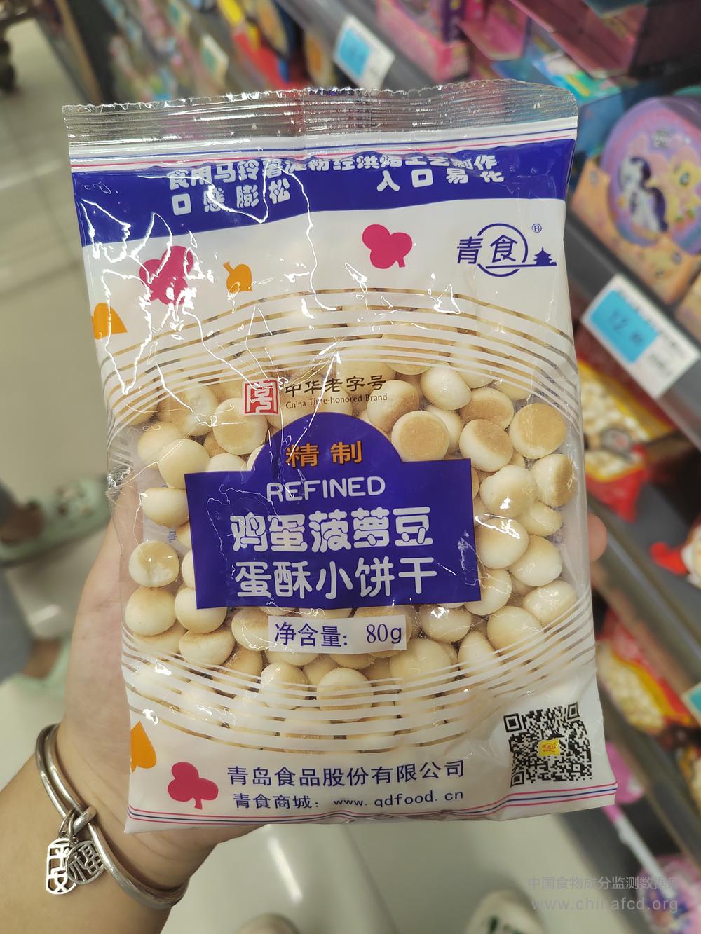当前位置:预包装食品营养标签数据查询系统>>青食鸡蛋菠萝豆蛋酥小饼干