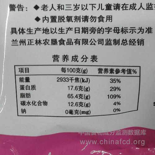 当前位置:预包装食品营养标签数据查询系统>>正林开口松子