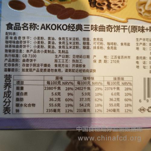 当前位置:预包装食品营养标签数据查询系统>>AKOKO经典三味曲奇饼干