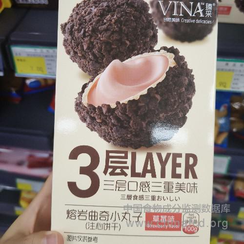 生产厂家:东莞市丰熙食品有限公司 品牌:臻采 食物类别:休闲食品-饼干、面包-饼干-夹心及装饰类 配料:小麦粉、植物油、白砂糖、食用油脂制品、 无水葡萄糖、乳糖、乳清粉、可可粉、全脂乳粉、 食用玉米淀粉、可可液块、草莓粉、磷脂、 食用盐、食用香精、胭脂虫红、碳酸氢钠、 碳酸氢铵、磷酸氢钙、柠檬酸。 净含量:100g 条形码/识别码:6947929622170 储存方法:请存放于凉爽,干燥处,避免阳光直射 产地:广东省东莞市