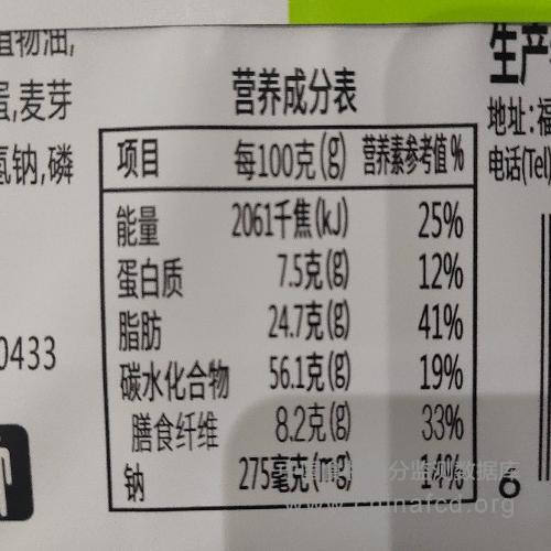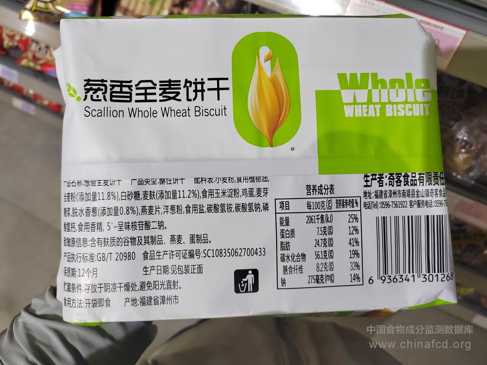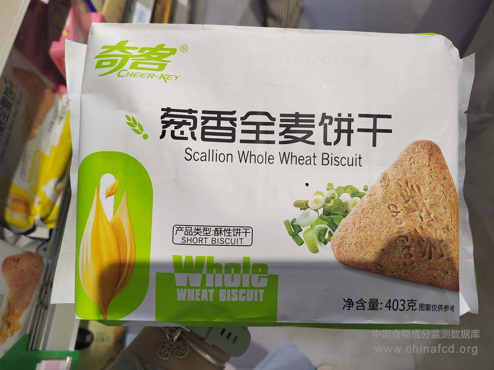 当前位置:预包装食品营养标签数据查询系统>>奇客葱香全麦饼干