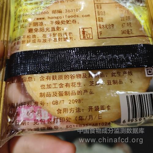 当前位置:预包装食品营养标签数据查询系统>>鸿祺饼干