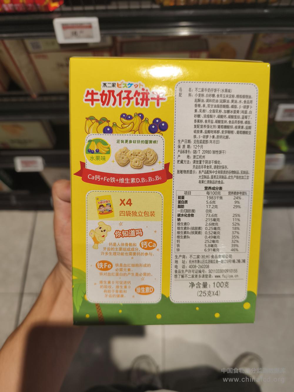 当前位置:预包装食品营养标签数据查询系统>>不二家牛奶仔饼干(水果味)